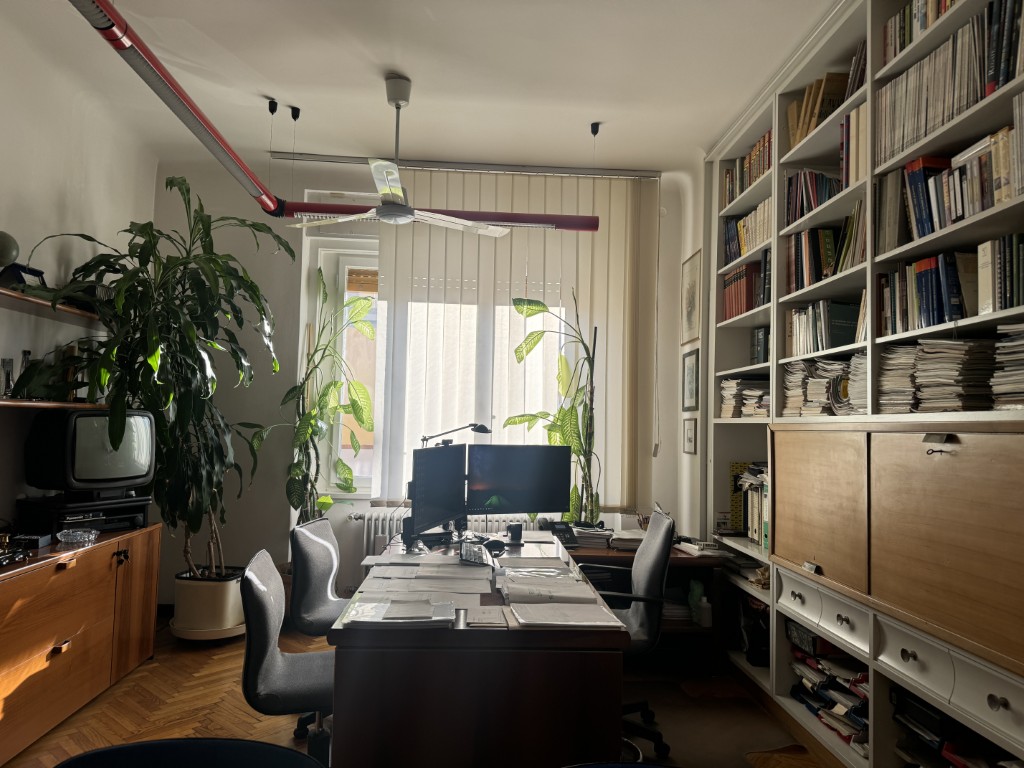 The heating is semi-independent, hot water is produced by a boiler, and air conditioning is also available.
