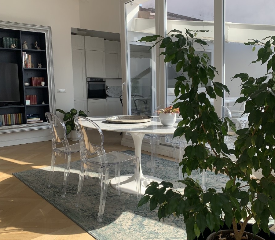 Luxury apartment with lots of natural light on the top floor of an historic building completely renovated, a few meters from seafront promenade, in the center of Trieste. With lift, air-conditioned, habitable terrace with views, towards the sea and the city. As new. Upstairs, splendid attic area with panoramic views. In the same building there is a large private parking connected directly.