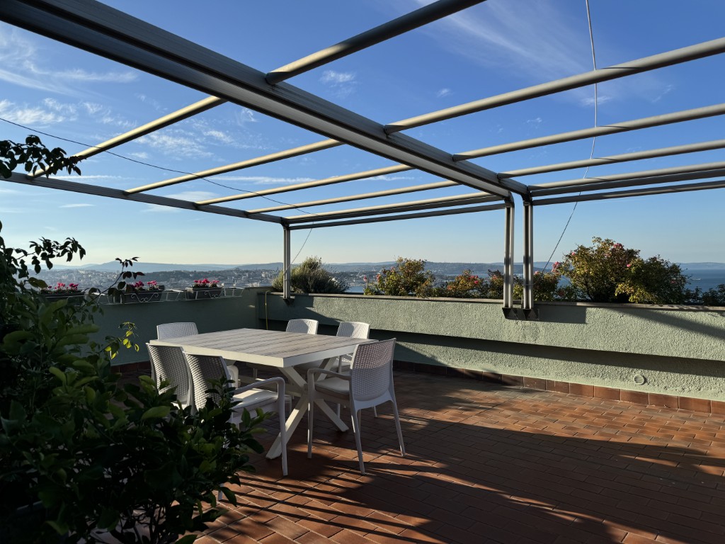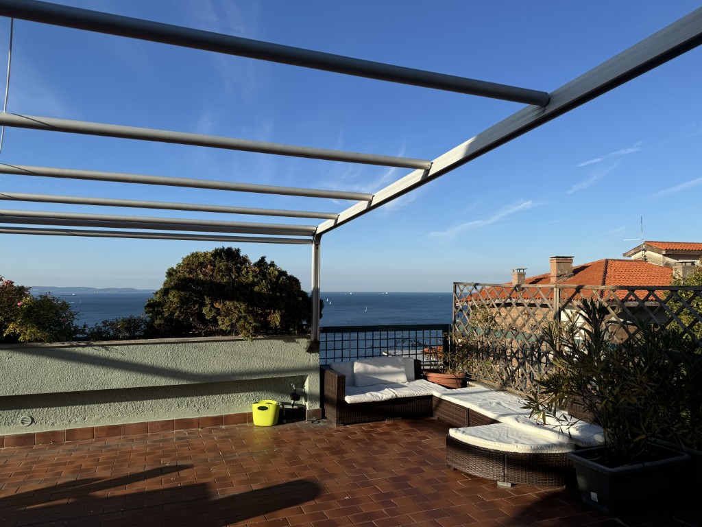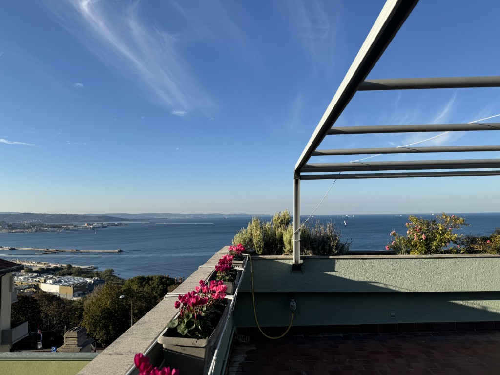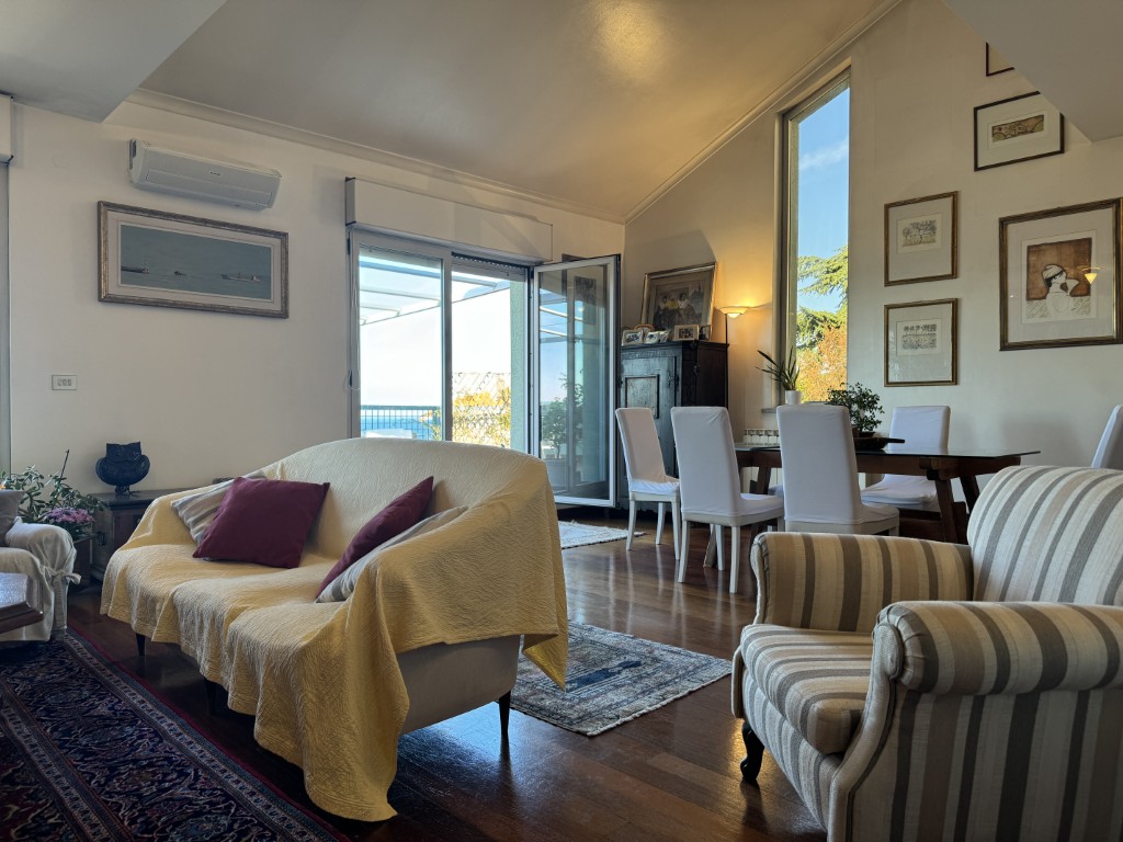 A few metres from the Faro della Vittoria lighthouse, on the top floor of an elegant ‘90s building with lift, a two-level penthouse comprising an entrance hall, an elegant living room with access to the 40 sq m panoramic terrace, a eat-in kitchen with double access, two large rooms and a windowed bathroom. The upper level, with access through a convenient staircase, consists of a double bedroom, two further attic rooms, two windowed bathrooms and a terrace with a splendid view of the sea and the city. Large masonry cellar and convenient double garage.