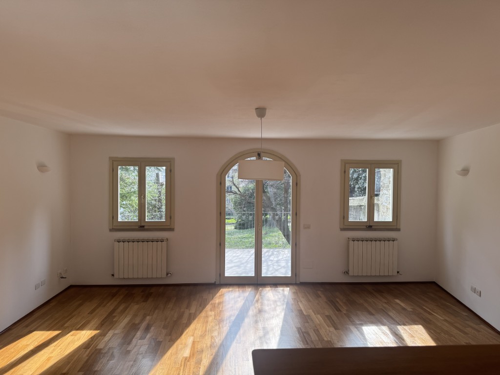 In contesto prestigioso, villino indipendente ristrutturato con parco condominiale, composto da ingresso, salone con terrazzo, cucina abitabile arredata, tre stanze, tripli servizi, ripostiglio e grande taverna con lavanderia. Due posti auto.
