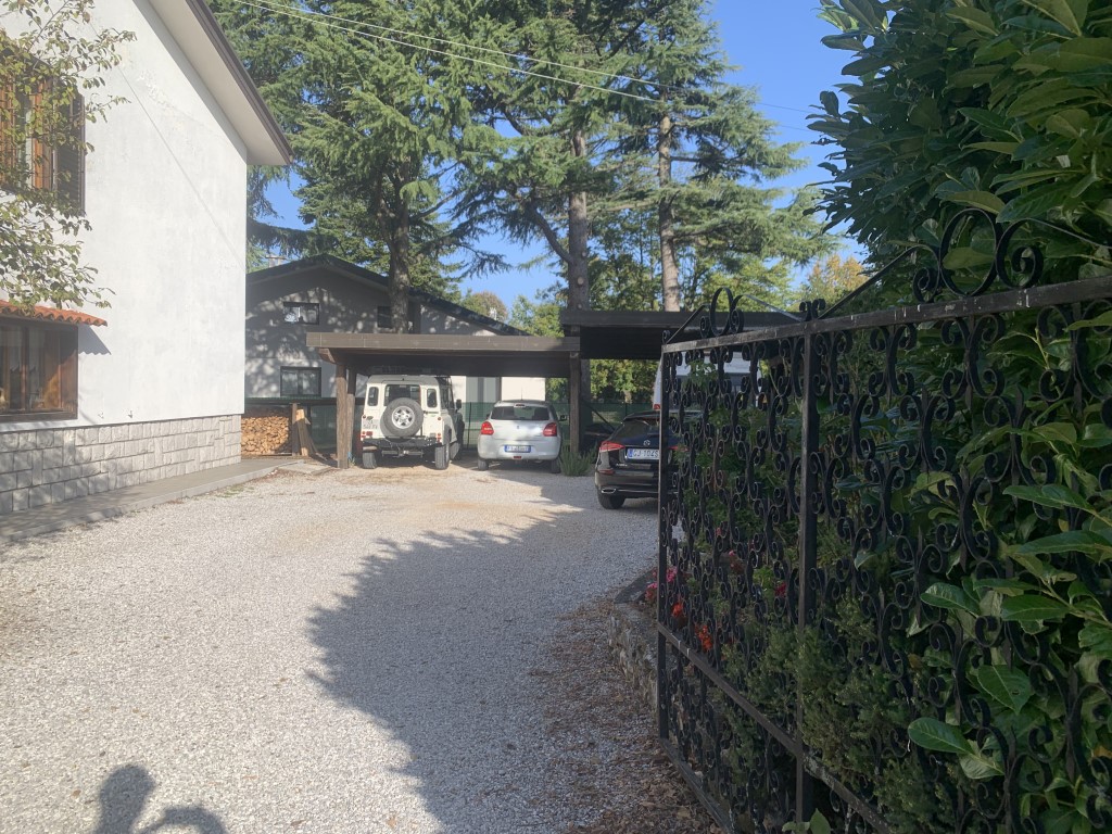 La villa è circondata da un giardino di 640 mq con accesso carraio, con ampio spazio parcheggio parzialmente coperto. Completano la proprietà un ampio porticato, due cantine al piano terra e la centrale termica con zona lavanderia.