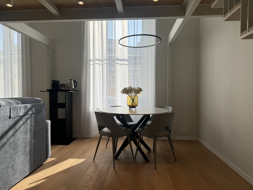 All’angolo tra Via San Lazzaro e Via delle Torri, nello storico Palazzo Diana, luminosissimo appartamento primo ingresso, finemente arredato e attrezzato. Internamente si compone da ingresso, spaziosa zona giorno con cucina a vista, camera matrimoniale, bagno completo con doccia e zona soppalcata dove si sviluppa un’ulteriore zona giorno con studio e lavanderia.